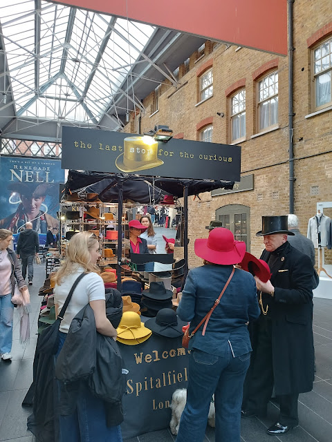 Justo enfrente de la tienda hay un puesto también de sombreros de época muy curiosos